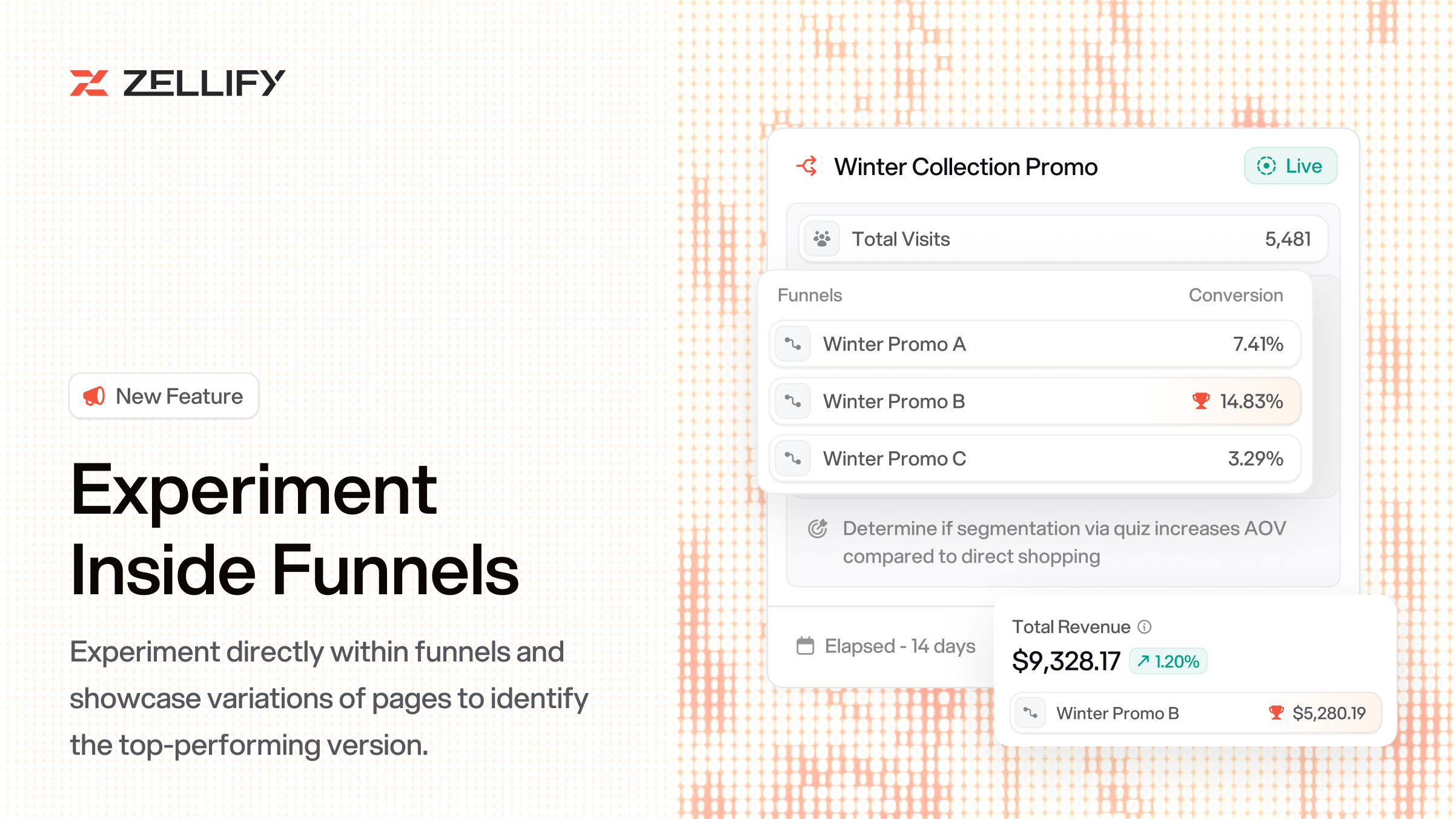 Experiment directly within funnels and showcase variations of pages to identify the top-performing version.