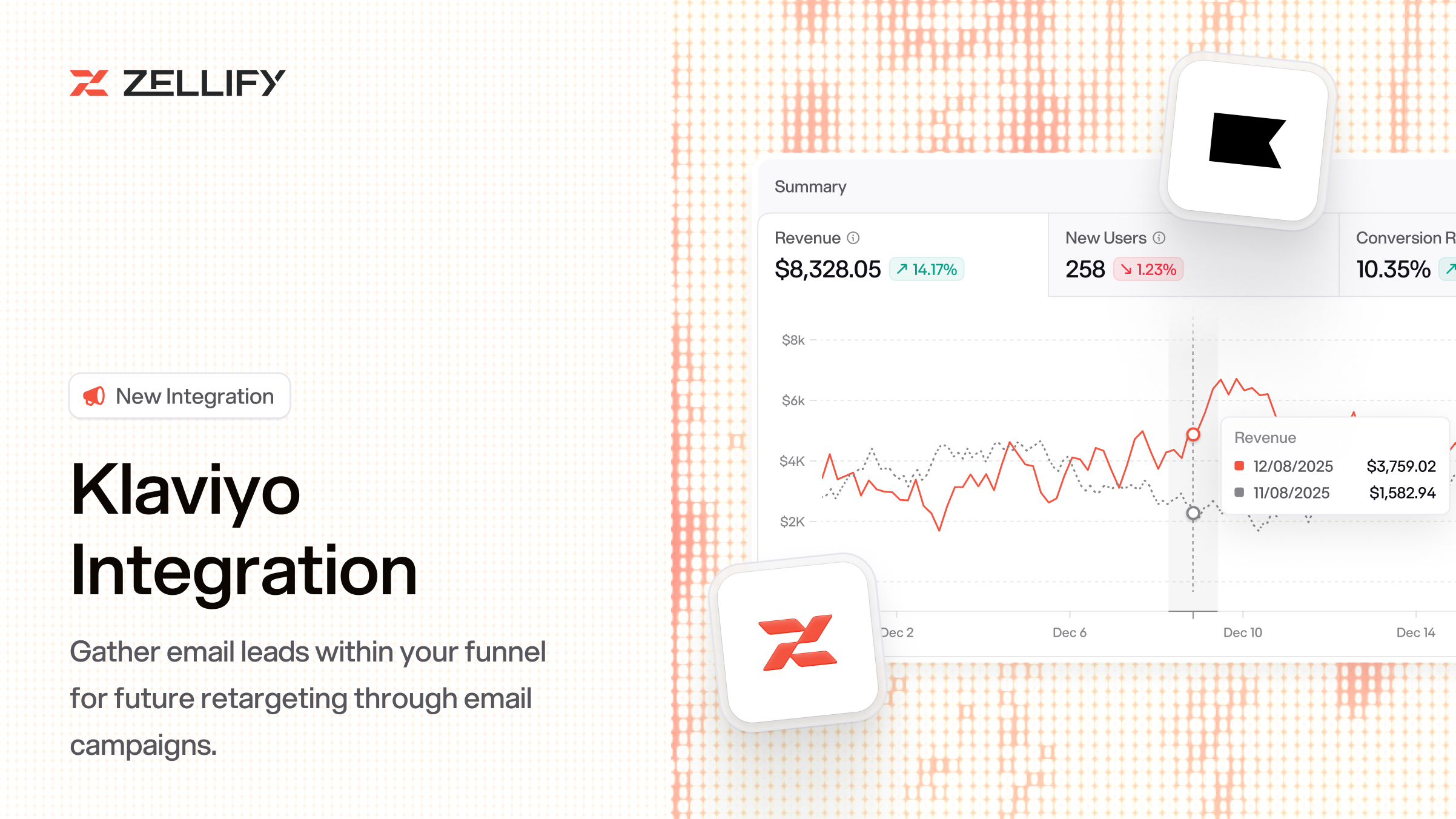 You can now send funnel behavior, email leads, and payment events directly to Klaviyo. Once enabled, Zellify automatically tracks user activity across your funnels and reports it to your Klaviyo account.