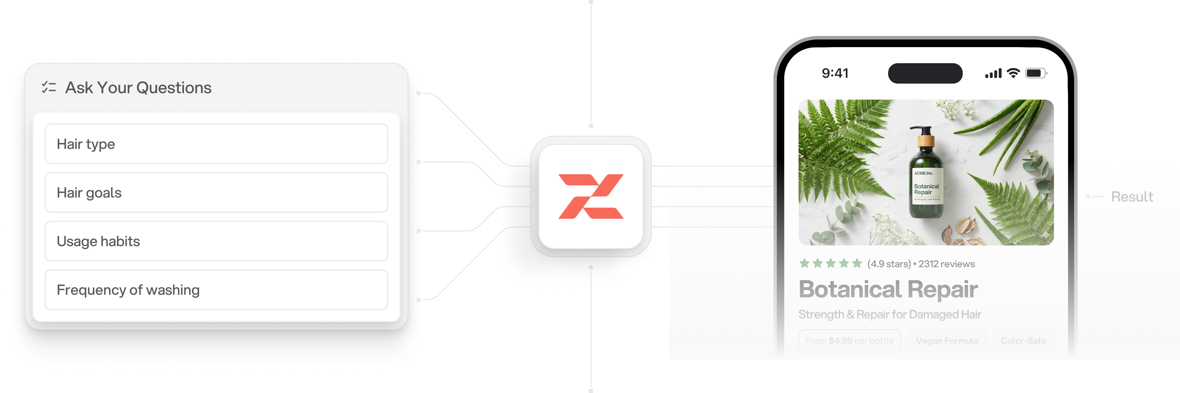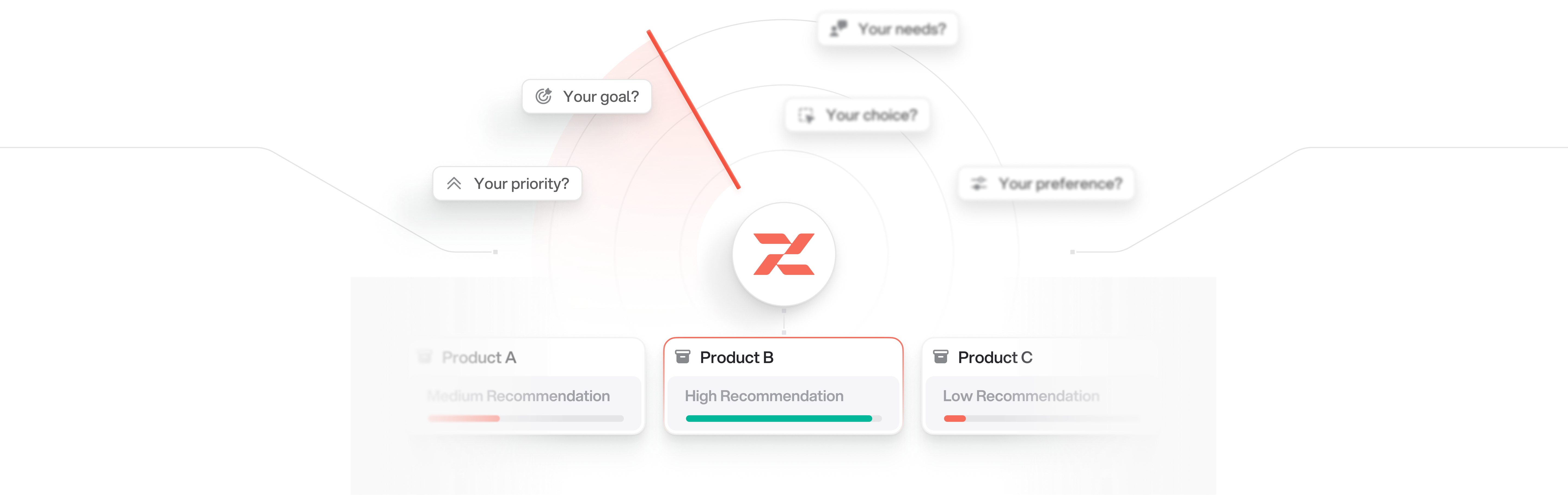 Users see a product offer tailored to their answers, preferences, and intent.